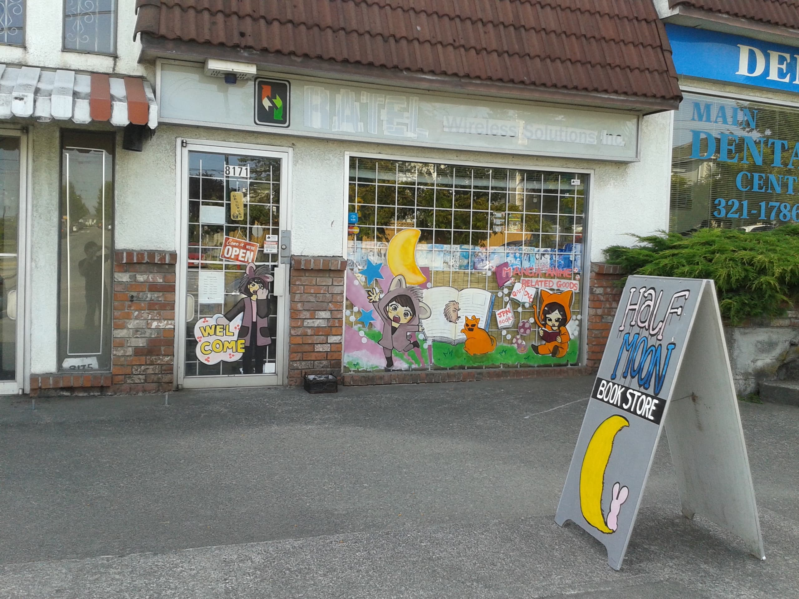 Half Moon is a store in the southern area of Vancouver. The store sells manga, anime, various types of anime merchandise, and other Japanese movies. Some of the merchandise is imported from Japan.